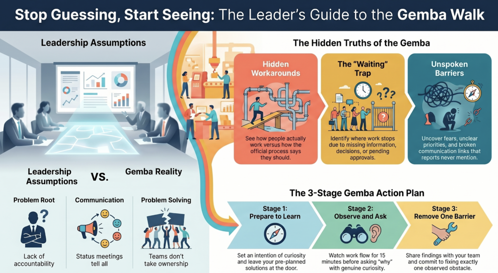 This month I want to share a story about what happens when leaders actually go to the Gemba – the Japanese term for “the real place” where work happens. Recently I was working with a leadership team that was convinced their problem was “lack of accountability.” They’d spent months trying to fix it with new…